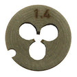 Metric Die for Watchmakers 1.4mm has an outer diameter of 8mm. Metric thread. Made of steel. Metric Dies are available in 16 sizes. Sold Separately.