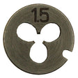 Metric Die for Watchmakers 1.5mm has an outer diameter of 8mm. Metric thread. Made of steel. Metric Dies are available in 16 sizes. Sold Separately.