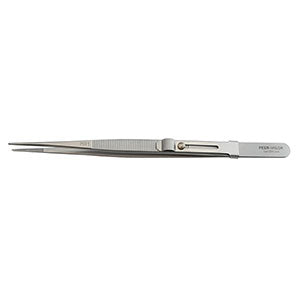 MR1 Diamond Tweezer Matt Satin Finish, Rounded Points with Slide Lock and Inside Groove is a high quality diamond handling tweezer, blackened stainless steel, length 6 1/4" (160 mm). Style MR1, tip diameter .0035".