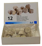 Royal pithwood buttons, quality pithwood for the cleaning of wheel pivots, box contains 12 pithwood buttons, 12 sizes.