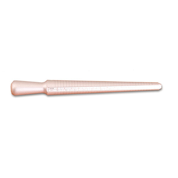 Universal Aluminum Ring Stick Measures by US and European ring sizes and shows diameter and circumference in millimetres. US sizes 2 to 15, graduated in quarter sizes. 10" (254 mm) long.