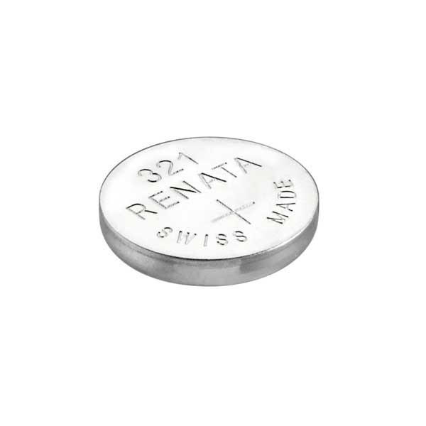 Watch Battery Renata 321 is a silver oxide low drain battery 1.55 V. Watch Battery 321 measures 6.8X1.6mm. This battery is mercury free and has a capacity of 14.5 mAh. Renata Switzerland is a leading manufacturer of premium button cells for watches and many electronic products.