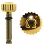 Omega® 18KT Yellow Quartz Undercut crown, with male post attached, diameter 2.50 mm, complete length including male post 6.80 mm, fits Omega® calibres: 1450, 1455. Fits Omega® case numbers: 39508270, 3950840