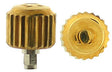 Omega® 18KT Yellow Cap Threaded Waterproof Crown, diameter 4.50 mm, fits tube 2.60 mm, total height of crown 6.00 mm, long pipe, tap 0.90 mm, fits tube 090ST0354. Fits Omega® case numbers: 7961502, 7961503, 8961502