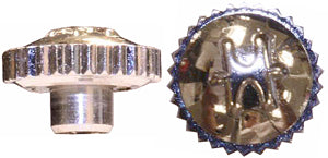steel regular crown with logo, domed top, total height of crown (including pipe) 2.50 mm, diameter 5.00 mm, tap 0.90 mm, height of crown 2.00 mm