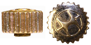 yellow undercut crown with logo, flush pipe, diameter 4.00 mm, fits tube 2.25 mm, tap 1.20 mm, height of crown 2.40 mm