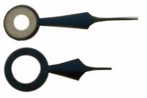 pair of hour and minute hands, blue colour, modern, length of minute hand 4.00 mm, Bulova® part number 5AB 63-64 BM 8, to fit: calibers 4AR, 4AU, 4AX, 5A, 5AB, 5AC, 5AD, 5AF, 5AH, 5AL, 5AN, 5AR, 5AT, 5AZ, 5BA, 5BC, 5BD, 6BP, 6BPA (hole size: 55/105 (minute/hour))