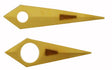 pair of hour and minute hands, yellow colour, radium dauphine, length of minute hand 4.50 mm, Bulova® part number 5AH 63-64 GRdDa9, to fit: calibers 4AR, 4AU, 4AX, 5A, 5AB, 5AC, 5AD, 5AF, 5AH, 5AL, 5AN, 5AR, 5AT, 5AZ, 5BA, 5BC, 5BD, 6BP, 6BPA (hole size: 55/105 (minute/hour))
