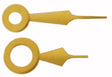 pair of hour and minute hands, yellow colour, modern, length of minute hand 5.00 mm, Bulova® part number 6AHC 63-64 GM10, to fit: calibers 6AHC, 6BKC, 6BLC, 6BMC, 6BOC, 6CAC, 6CBC, 6CFC, 6CLC (hole size: 65/109 (minute/hour))