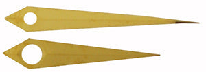 pair of hour and minute hands, yellow colour, dauphine pitched, length of minute hand 11.50 mm, Bulova® part number 10CSC 63-64 GDaP23, to fit: calibers 8BBA, 9AR, 9ARC, 9AS, 9ASC, 10BRC, 10CMC, 10CSC (hole size: 75/130 (minute/hour))