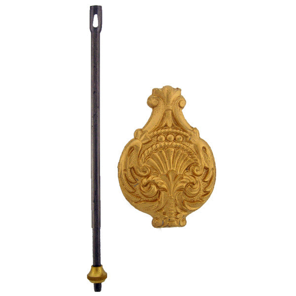 Waterbury Kitchen Pendulum is a Waterbury Shell adjustable kitchen clock pendulum with a diameter of 3" x 2 1/8" and a rod length of 6 1/4".