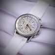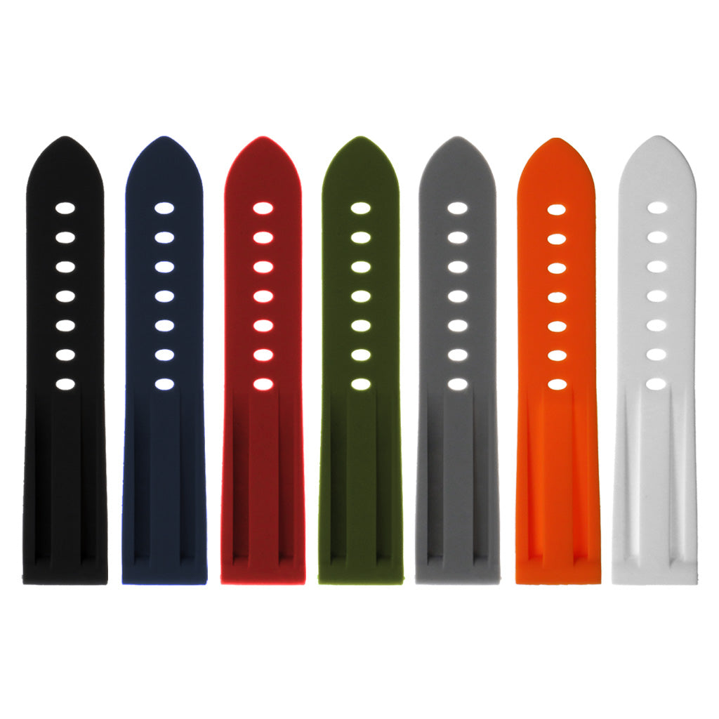 Soft and comfortable silicone rubber strap featuring double lengthwise grooves finished with solid stainless steel pre-v buckle.