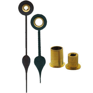 45mm Pear Shape Steel French Clock Hand blue steel (black in appearance), pear shaped, french clock hands. The minute hand measures 45 mm in length. The hour hand hole has a 4.4 mm diameter, and the minute hand has a square hole 2 x 2mm.