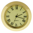 Premium Gold Ivory Roman Insert 1 7/16" is a premium fit up movement with a gold plated bezel, ivory dial and black Roman numerals. This premium alloy bezel insert uses a Seiko PC21 watch movement, and is supplied with a battery installed. The case is supplied with a gasket to hold the bezel into the hole. This model has a crystal glass lens, stainless steel back cover and alloy bezel. The outside diameter of the bezel is 36.5 mm (1-7/16"), fits into a hole 34.9 mm (1-3/8") and has a total depth 9.5 mm (3/8"). When installing, remove the white plastic clip underneath the crown.