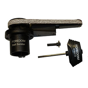 Foredom Belt Sander Attachment All metal quality-machined device attaches with ease over the top of a Foredom #30 hand piece with supplied hex key. Sander has 3 permanently lubricated ball bearings. Use to power sand and smooth metal, wood, acrylic and composite materials. Unit comes with a 180 grit belt installed and is supplied with 3 additional belts each in grits 100 – 180 – 240. Can be used freehand or mounted into a hand piece holder for more control of the work piece. Measures 4 7/8” long x 1 3⁄4” wide x 2” high. Uses sanding belts measuring 7 x 257mm.