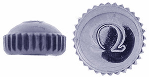 Omega® Steel Waterproof Crown to fit Omega® caliber 420, diameter 5.00 mm to fit tube 2.00 mm, Tap 1.20 mm, domed top. Case numbers are unknown.