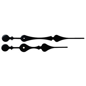 Spade High Torque Hour & Minute Hands 8 1/4" are a set of quartz clock hour and minute hands measuring 209.60mm (8 1/4") long. The hands are supplied as a pair, the hour hands a round hole measuring 5.5mm (7/32") and the minute hand has an oblong hole measuring 3.8mm (5/32") x 2.9mm (7/64"). The length of the hand indicated is length of the minute hand from the center of the hole to the tip of the hand. Supplied with matching hour hand.