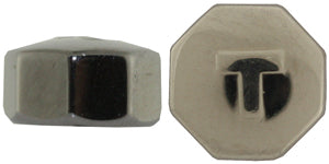 Steel colour, 8 sided (hexagonal), waterproof crown, genuine with logo, diameter 5.00 mm, fits tube 2.00 mm, total height of the crown is 2.75 mm, fits stem 0.90 mm. Fits Tissot® case numbers: L861, L871, L890, L961, L971. Tissot® part number is T350.514 or T350006648
