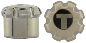 Steel colour, mushroom cap, waterproof crown, genuine with logo, diameter 6.00 mm, fits tube 2.50 mm, total height of the crown is 5.40 mm, flush pipe, fits stem 0.90 mm. Fits Tissot® case numbers: S461, S462, S562. Tissot® part number is T350.431 or T350006567