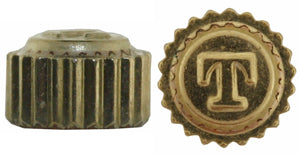 Genuine Tissot® Gold colour, square waterproof crown, genuine, with logo, diameter 3.00 mm, fits a tube 1.60 mm, total height of the crown is 1.90 mm, flush pipe, fits a stem tap 0.90 mm. Fits Tissot® case numbers: C212, C213, C230, C290, E242, F213, F215, F218, F263, F265, F273, F275, F300, F304, F354, G602, G610, G611, G612, G613, G614, G615, G616, G618, G619, G622, G623, G624, G625, G628, G629, G630, G631, G633, G634, G635, G641, G645, G649, G650, G662, G663, G664, G668, G670, G671, G672, G676, G679, G681, G692, G720, G721, G722, G723, G725, G727, G728, G729, G731, G733, G734, G735, G738, G739, G740, G742, G743, G745, G746, G747, G748, G757, G759, G760, H634, H635, H636, H637, H638, H646, H652, H669, H674, H675, H682, H689, H690, H692, H693 H695, H744, H746, H747, H748, H750, H764, H766, H769, H770, H773, H777, H780, H781, H782, H783, H784, H785, H786, H787, H790, H791, H792, H793, H794, H795M H796, H797, H798, H825, H827, H828, H832, H833, H834, H842, K140, K170, K190. Tissot® part number is T350.012 or T350006170