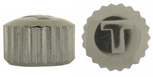 Genuine Tissot® Steel colour, square waterproof crown, genuine with logo, diameter 3.50 mm, fits tube 1.60 mm, total height of the crown is 2.20 mm, flush pipe, fits a stem tap 0.90 mm. Fits Tissot® case numbers: C225, C275, D391, F335, F385, J130, J132, J134, J170, J172, J174, J232, J272, J274, S525, S565, S625, S665. Tissot® part number is T350.032 or T350006189