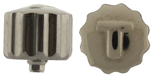 Polished Titanium, threaded waterproof crown, genuine with logo, square, diameter 5.50 mm, fits tube 2.60 mm (threaded on the inside of the case tube), total height 5.50 mm, fits stem 0.90 mm. Will fit Tissot® tube T358.366. Tissot® part number for the crown is T350.540 or T350006674